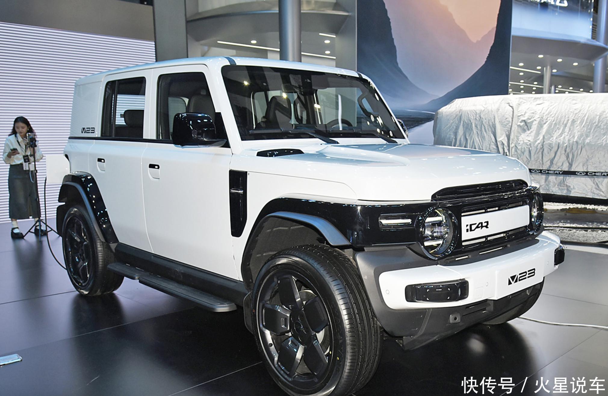 当先,咱们得承认,iCAR V23的外不雅蓄意如实很是漂亮。经典圆形大灯、越野立场保障杠合格栅、荫藏式机械式门把手等蓄意元素,赋予了这款车特有的硬派越野立场。同期这款车型还提供多种车身样子采用,进一步餍足了年青东说念主对个性化的追求。这些蓄意上的亮点无疑为iCAR V23获得了一定的流量。