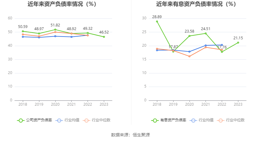 在偿债材干方面,公司2023年年末钞票欠债率为46.52%,比拟上年末着落2.80个百分点;有息钞票欠债率为21.15%,比拟上年末高潮3.39个百分点。