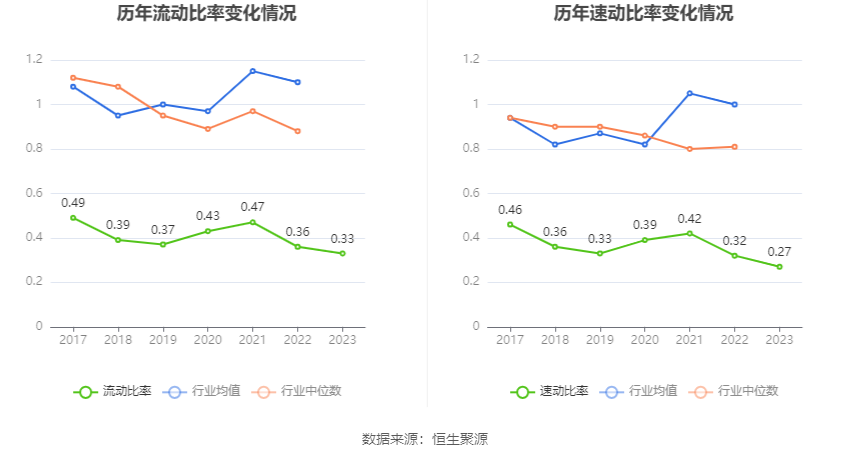 2023年,公司流动比率为0.33,速动比率为0.27。