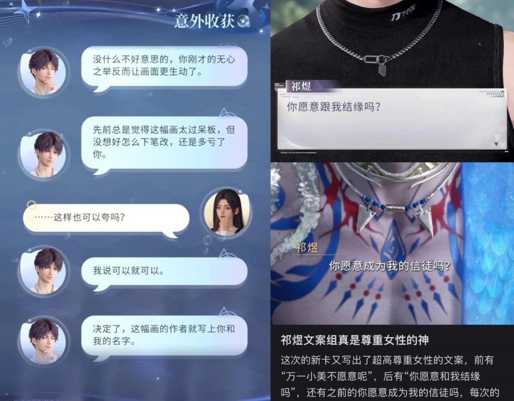 她深信变装与她之间是有所感应的,举例《恋与深空》的速即换装系统就能给她许多预示,“我今日心情不好,怒放游戏,祁煜会穿红色、戴了头饰,便是思要哄我欣慰。”