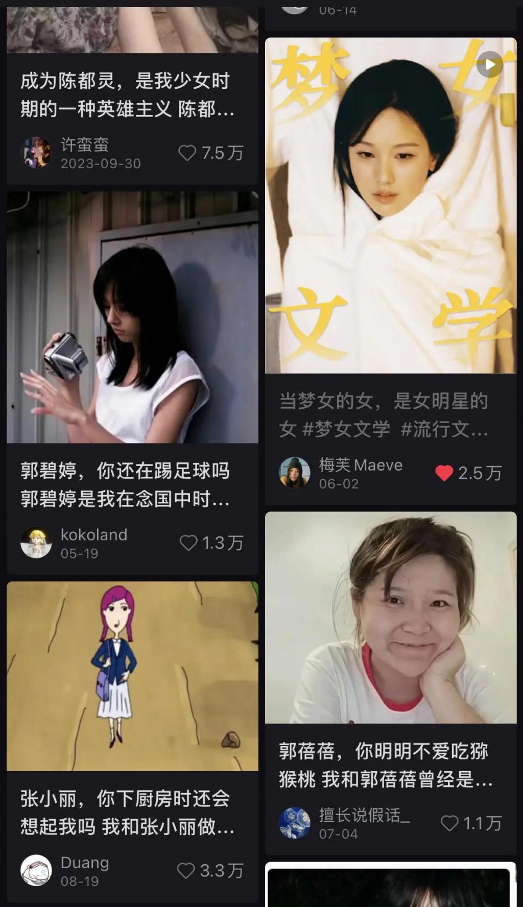 前几天有个“内娱梦女文四巨头”的热搜,热搜主角分别是陈文淇、陈齐灵、papi 酱、田曦薇。热搜里张贴着粉丝创作的“梦女文”——著述里,她们是“我”的同学,是暗恋对象,是一又友或是敌手,咱们一同成长,有着亲密又拧巴的情绪联系。
