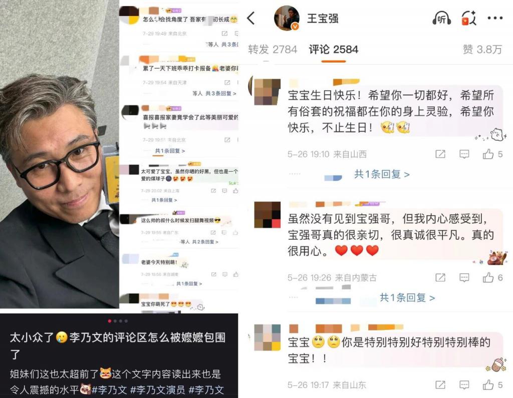 而点开李乃文、王宝强等一水儿中年男演员、男歌手的外交媒体动态,你会看到这么的指摘: