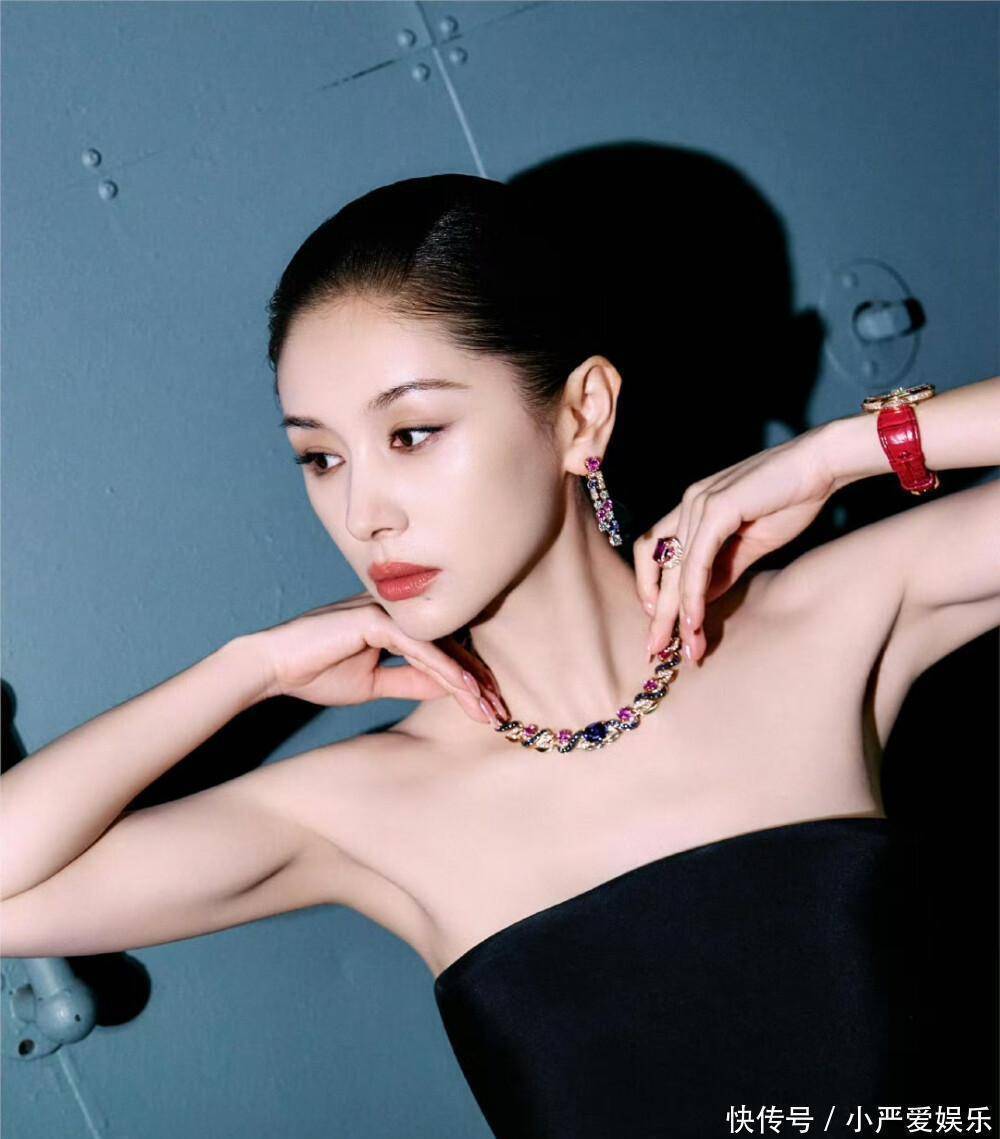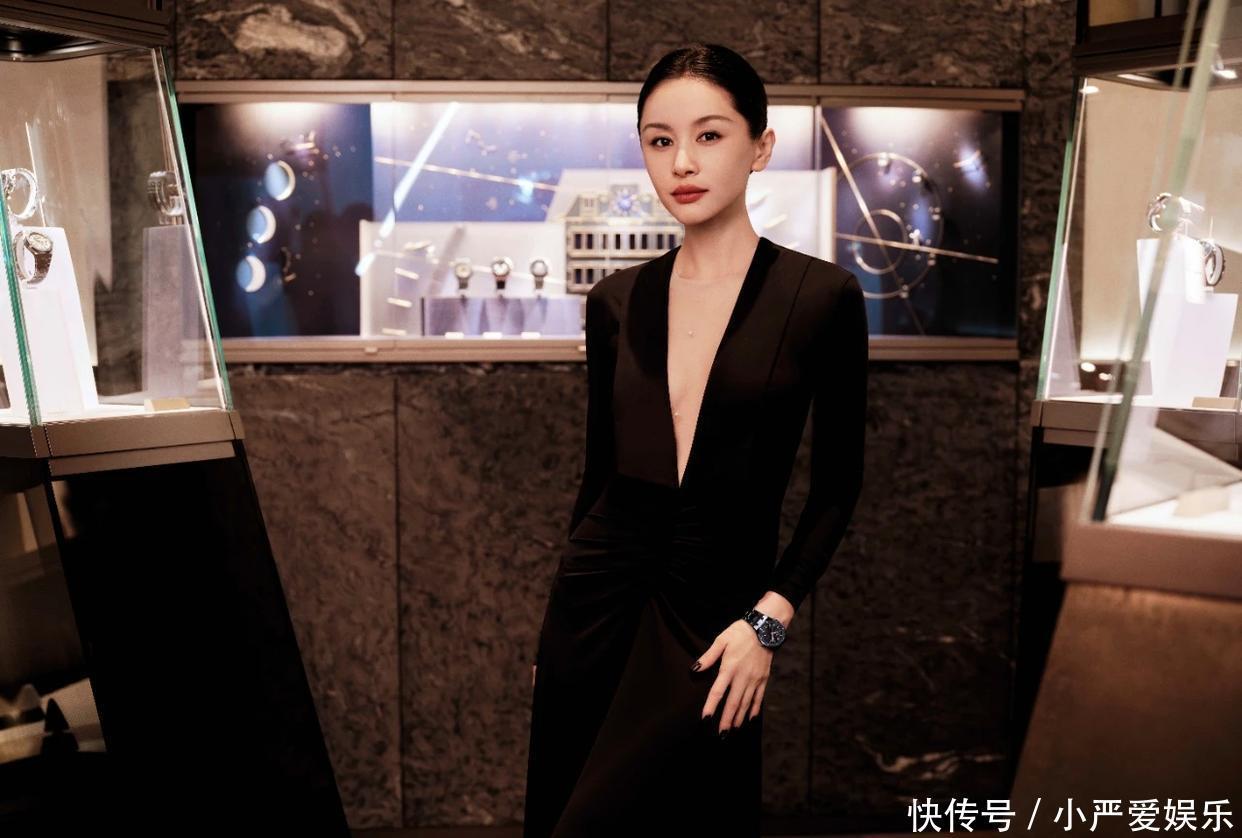 一袭玄色深V长裙,领口经营勇猛开到腰际,竣工展现了她优雅的天鹅颈和精良锁骨。