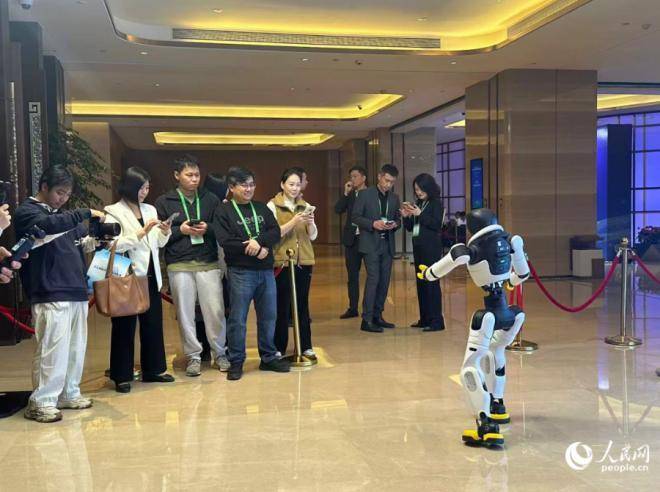 与会企业代表与智能机器东谈主进行互动。东谈主民网记者 张萌摄
